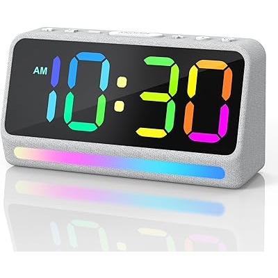 REACHER Extra Loud Alarm Clock for Heavy Sleepers Adults, 5 Extremely Loud Wake Up Sounds, Kids Alarm Clock for Teens, Boys, Bedrooms, LED Digital Display, 7 Color Night Light,Dimmer,Bedside